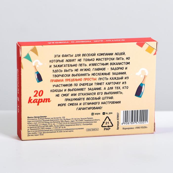 Купить игра для компании "фанты звезда бокала" 20 карт от 120 руб. с доставкой до пункта выдачи в Ивантеевке. Интернет магазин ДекаМаркет. Оплата при получении.